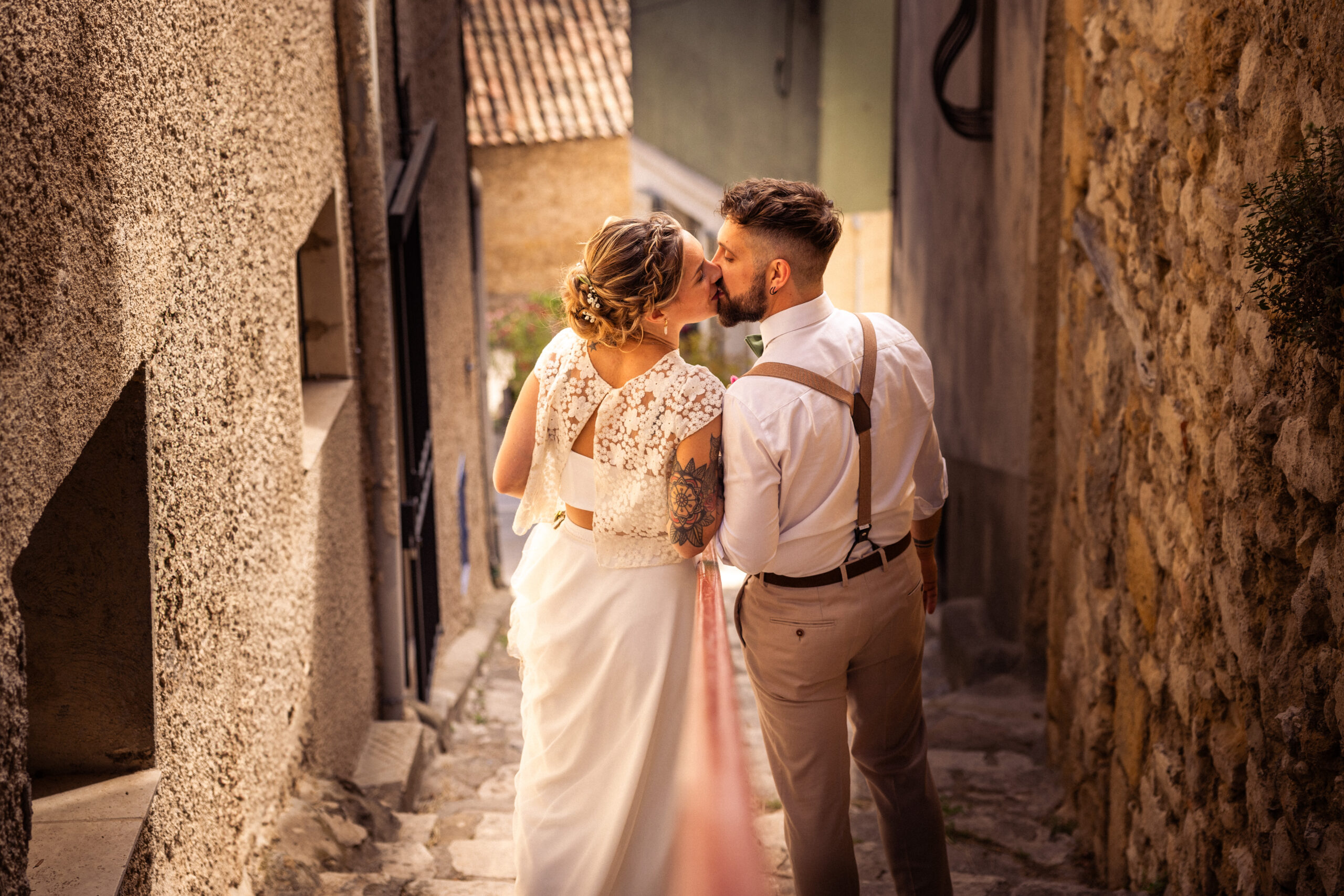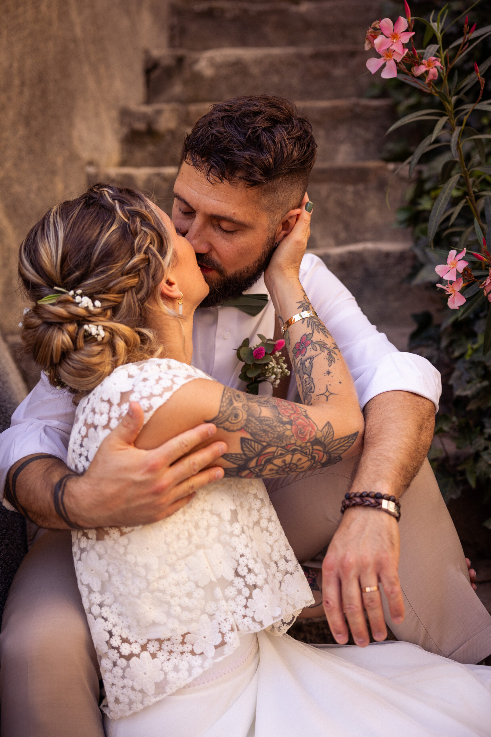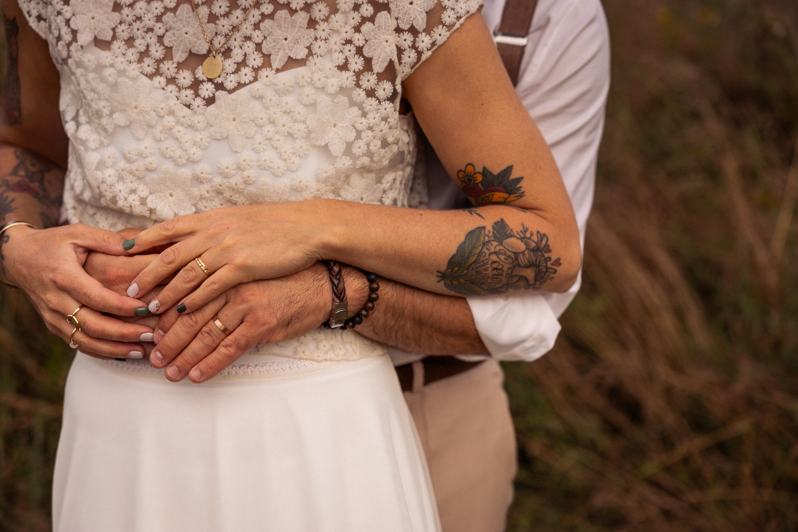 "Nous avons eu le plaisir d'engager Jeanne pour notre mariage l'an dernier. C'est une photographe impliquée mais aussi discrète : lors du vin d'honneur elle a pu capturer de très beaux moments de joie, de rire et d'amour sans rompre le charme et la magie. Les photos portrait de couple sont elles aussi riches en sentiments et authenticité dans des cadres et lumières variés. De quoi garder à jamais un encore plus beau souvenir d'une magnifique journée !!!"